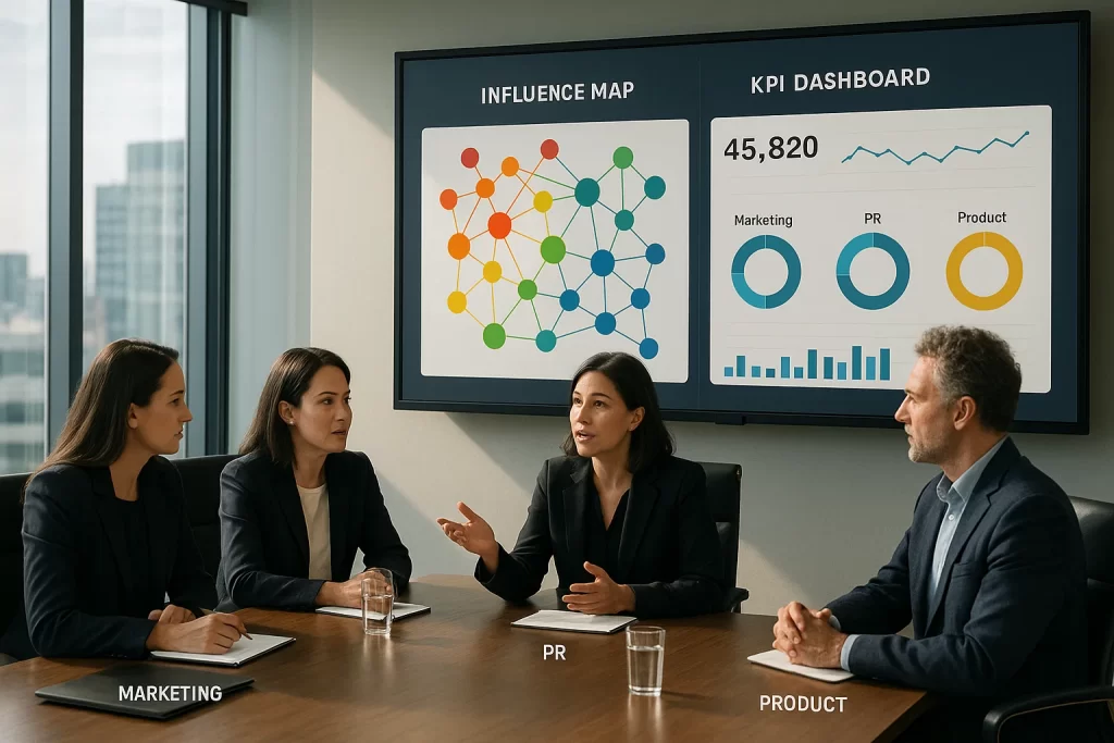 An influence map isn’t just a pretty diagram. It’s a decision-making tool that helps leadership, marketing, and PR teams see: