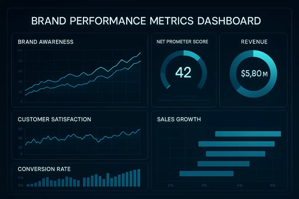 A Brand Performance Metrics Dashboard is only as strong as the KPIs it tracks. Without carefully chosen indicators, your dashboard risks becoming a collage of vanity metrics. The right metrics transform the dashboard into a strategic command center, highlighting what truly drives brand equity, consumer perception, and market momentum.