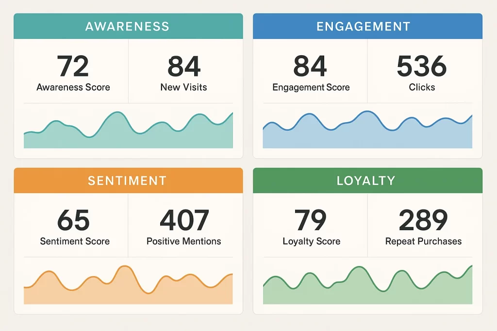 Tip: Break dashboards into modules (e.g., Awareness, Engagement, Loyalty) to maintain clarity without overcrowding.