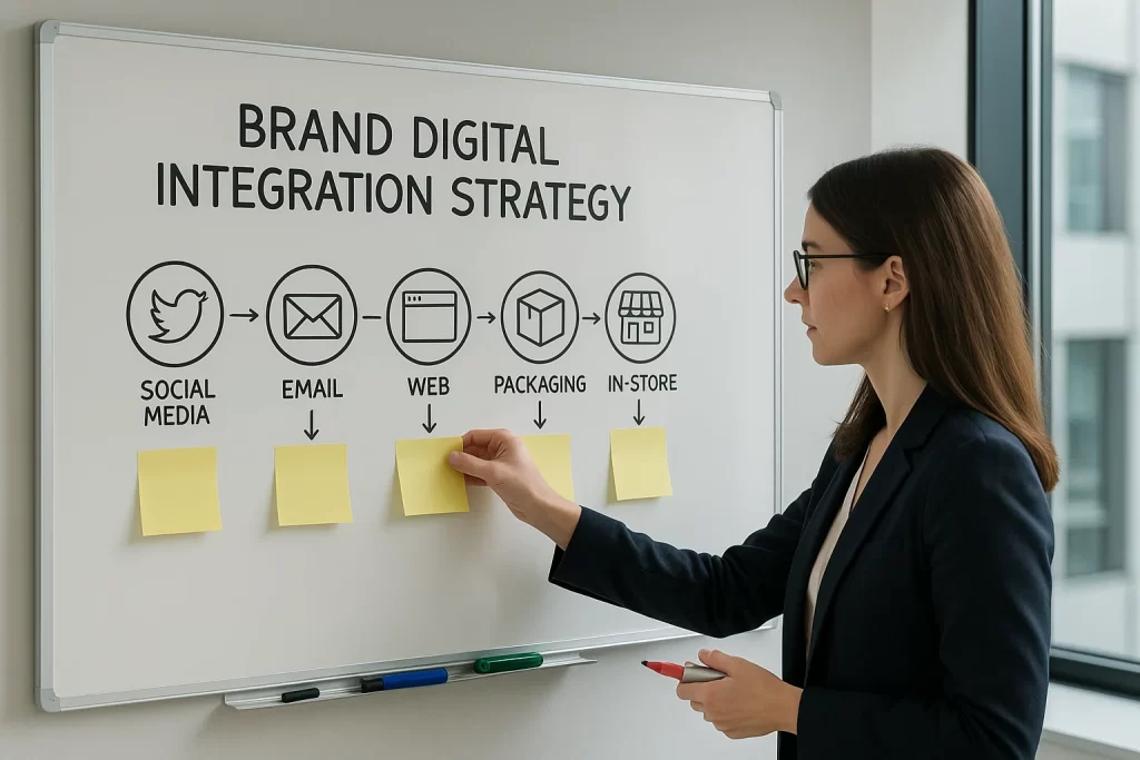 A brand digital integration strategy is a structured plan that aligns your brand’s identity—visuals, voice, messaging, and experience—across every digital touchpoint. It ensures consistency from social media to apps, emails, websites, and customer support. This strategy helps build trust, reinforce emotional resonance, and unify internal teams and platforms under one cohesive brand experience.
