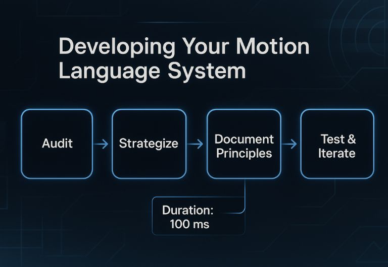Creating a cohesive motion language isn’t just about animations, it’s about aligning movement with meaning. To build a scalable system, teams must be intentional, collaborative, and iterative. Here’s how to break it down:
